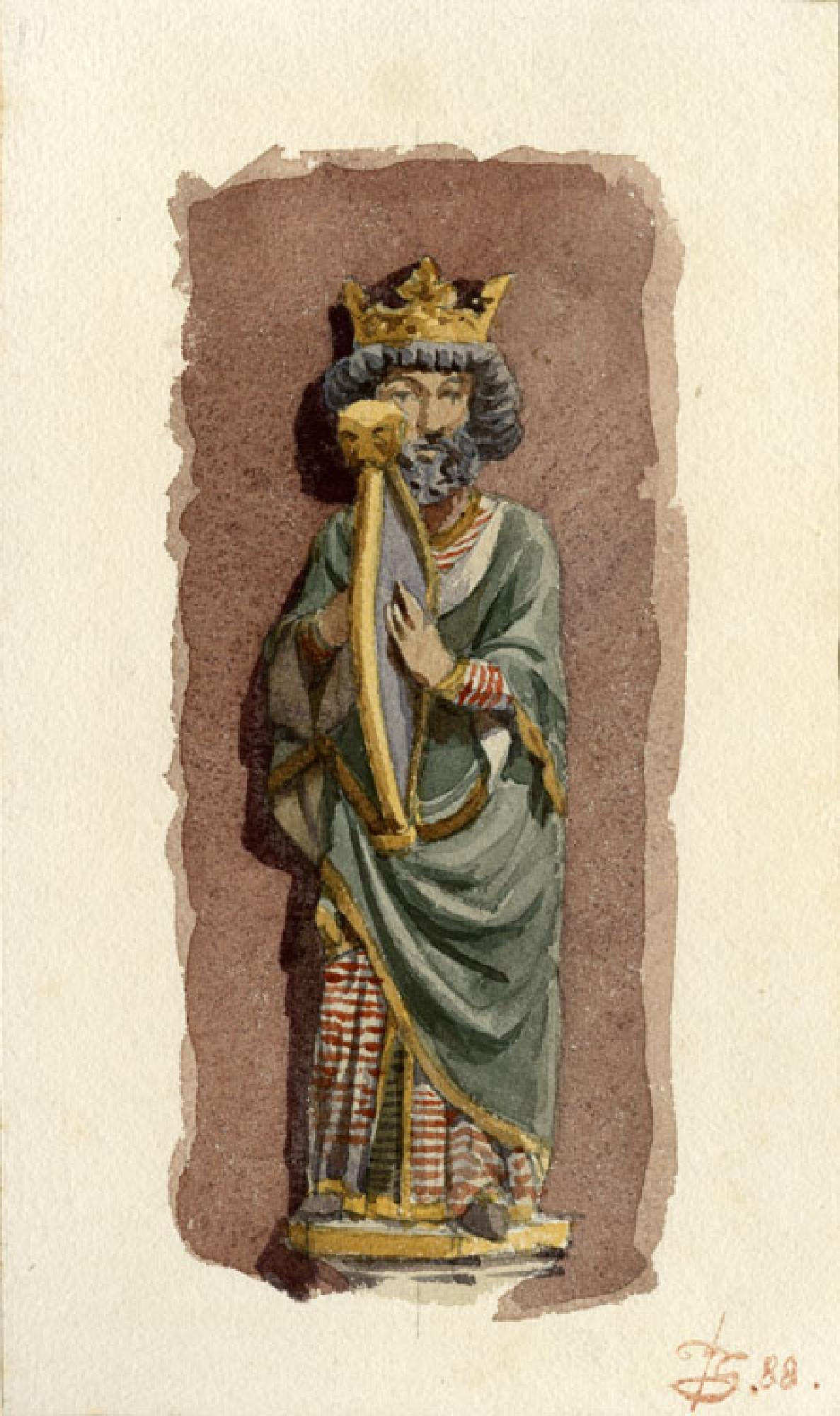 Die zwischen 1887 und 1889 entstandenen Aquarelle von Fritz Geiges dokumentieren die Farbfassung von 1604 der Skulpturen in der Turmvorhalle und dienten 1889 als Vorlage für die Neufassung von Carl Schilling unter der Regie von Fritz Geiges. Diese Fassung wurde von 1999 bis 2004 restauriert und konserviert.