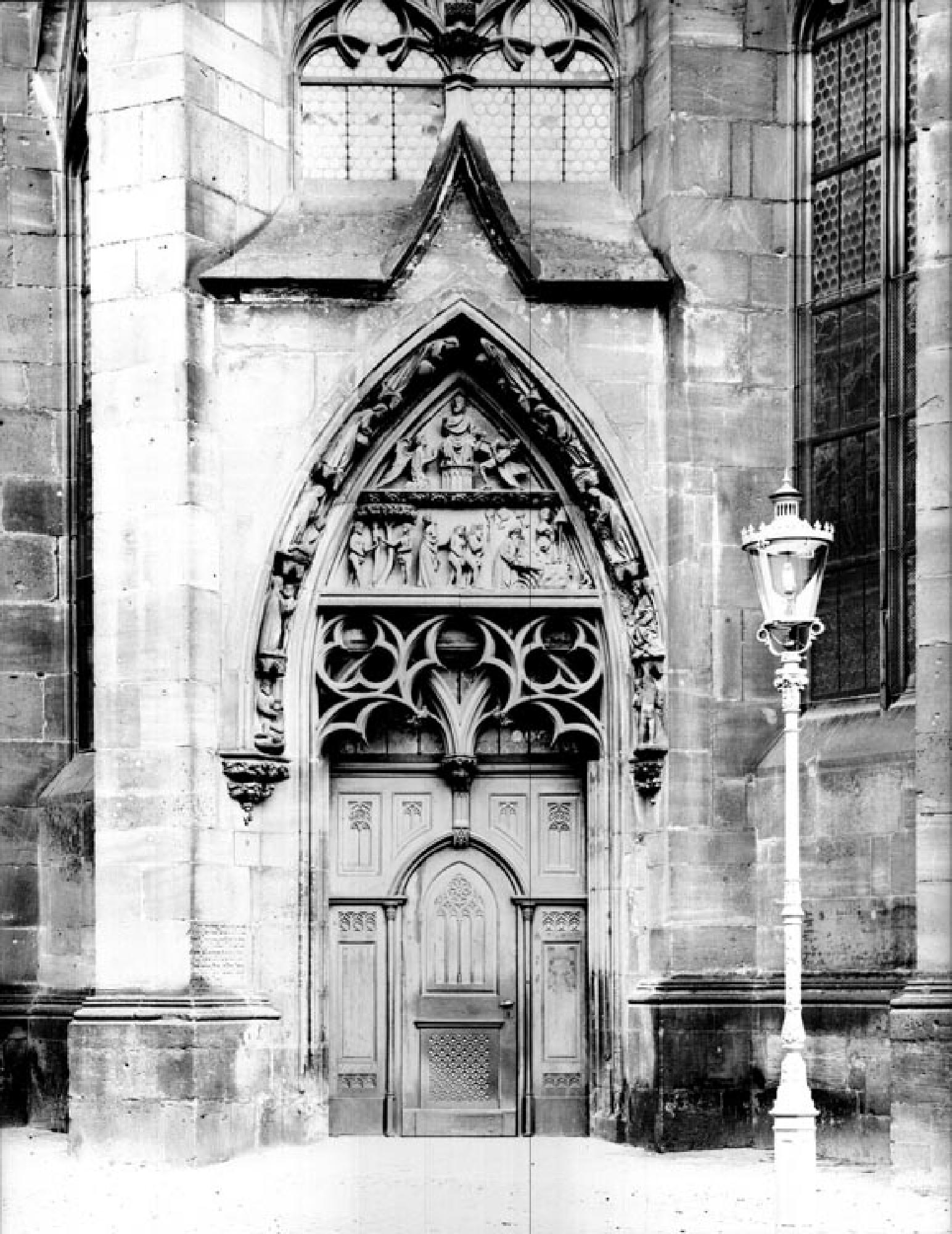Schöpfungsportal Photographie Object information Inventarnummer Fo-06162 Sammlung Fotosammlung Beschreibung Blick von Nordwesten auf das Schöpfungsportal am nördlichen Choreingang. Standort Portal - Schöpfungsportal Keywords Schöpfungsportal, Parler, Relief, Tympanon, Archivolte Permalink https://onlinesammlung.muensterbauverein-freiburg.de/en/object/F8D9A91722204ED98C1F413CAC5C4386