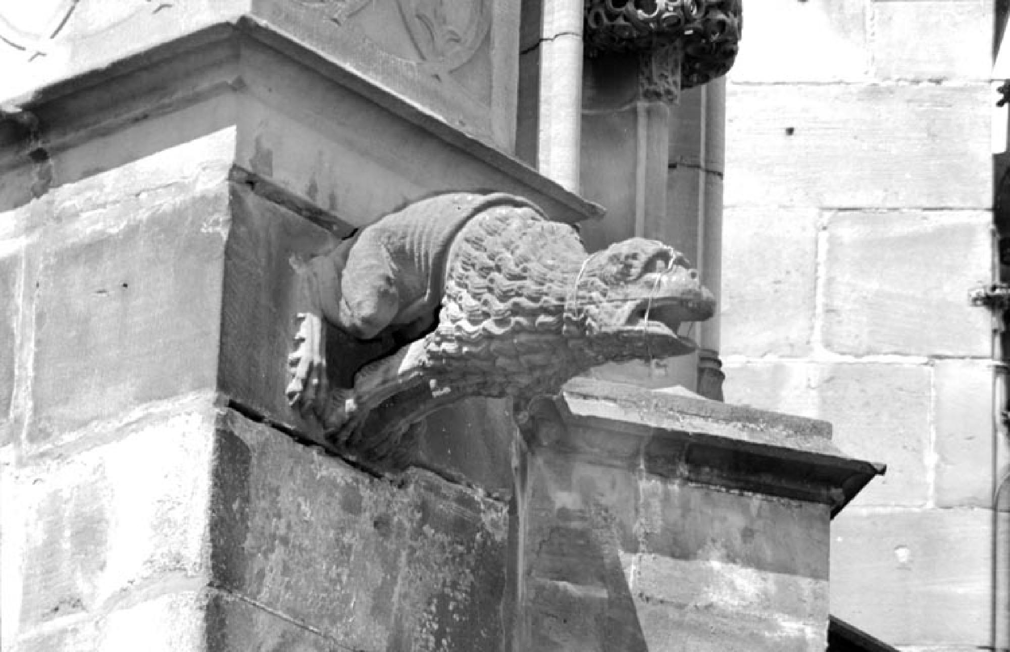 Das Foto erscheint in den Freiburger Münsterblättern 1907 (3. Jg., 1. Heft) im Aufsatz "Die Wasserspeier am Freiburger Münster" von Dr. Fritz Baumgarten.
