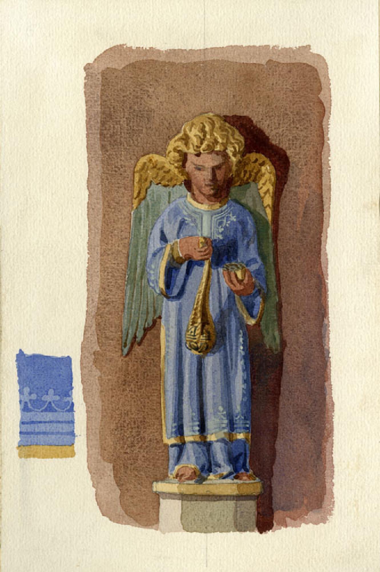 Die zwischen 1887 und 1889 entstandenen Aquarelle von Fritz Geiges dokumentieren die Farbfassung von 1604 der Skulpturen in der Turmvorhalle und dienten 1889 als Vorlage für die Neufassung von Carl Schilling unter der Regie von Fritz Geiges. Diese Fassung wurde von 1999 bis 2004 restauriert und konserviert.