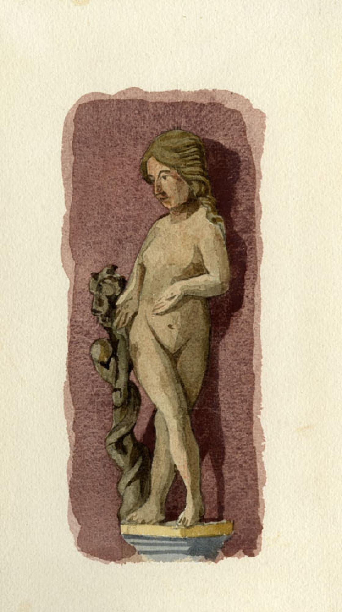 Die zwischen 1887 und 1889 entstandenen Aquarelle von Fritz Geiges dokumentieren die Farbfassung von 1604 der Skulpturen in der Turmvorhalle und dienten 1889 als Vorlage für die Neufassung von Carl Schilling unter der Regie von Fritz Geiges. Diese Fassung wurde von 1999 bis 2004 restauriert und konserviert.