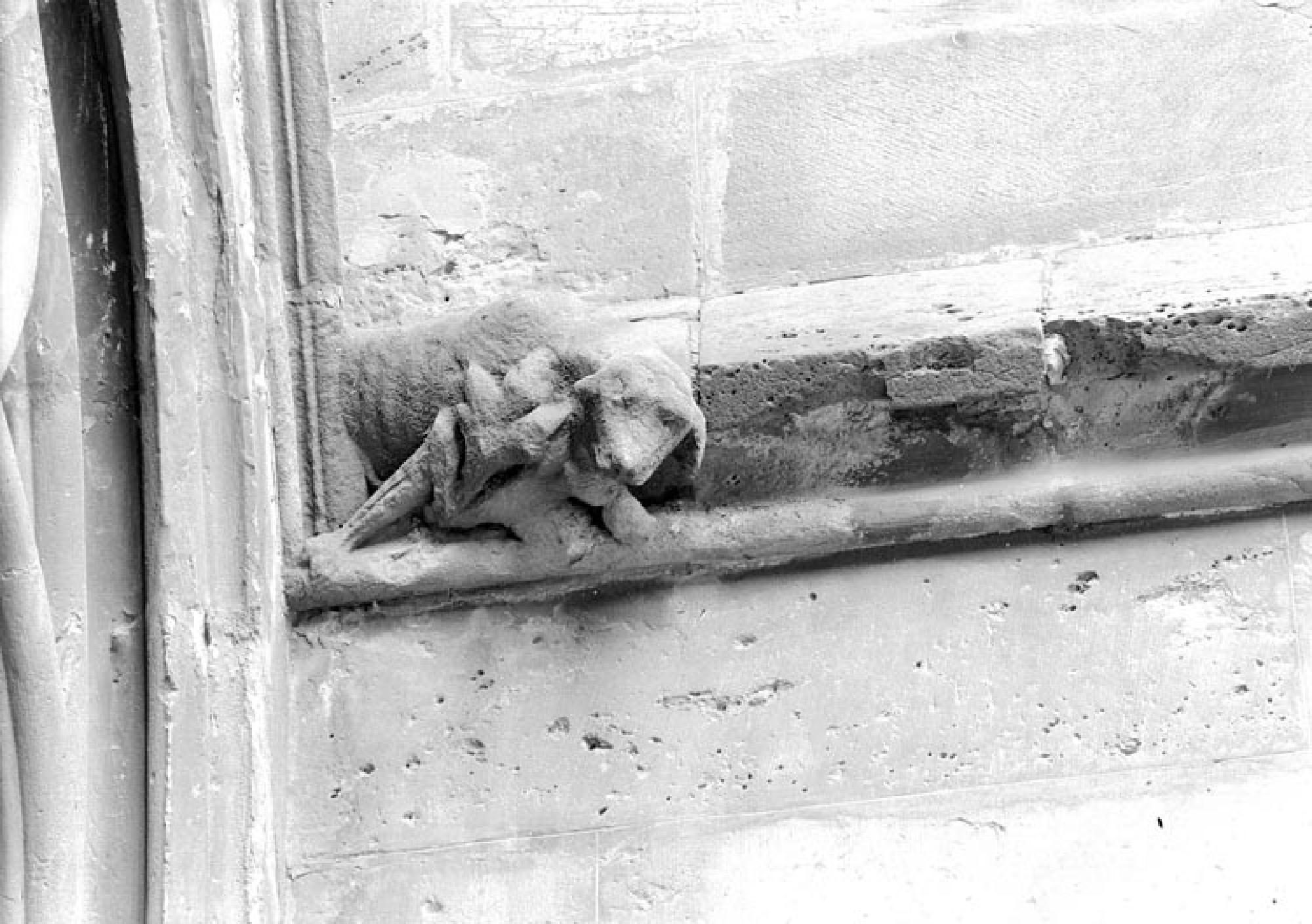 Miniaturwasserspeier Hund Photographie Informations sur l'objet Inventarnummer Fo-06187 Sammlung Fotosammlung Beschreibung Der südliche Miniaturwasserspeier über dem Lammportal entstand um 1260/70 und wurde 1915 durch eine Kopie ersetzt. Die Originale hatten ursprünglich Wasserrinnen. Standort Sockelzone / Lammportal Mot-clé WS14, Skulptur, Hund, Wasserspeier Permalink https://onlinesammlung.muensterbauverein-freiburg.de/index.php/fr/object/50FA4DA2443C403195D239D9D272CDF0