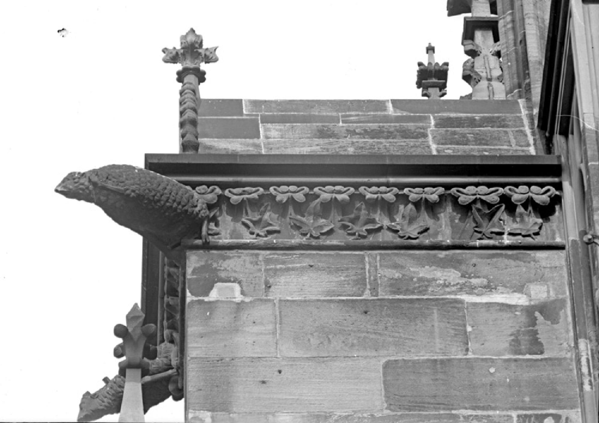 Der Körper erscheint im Vergleich zum Kopf sehr massig. Der linke Vorderlauf ist in Richtung des Kopfes angehoben. Der vordere Teil des Laufes fehlt allerdings, genau wie ein Stück der Schnauze und die Hörner.